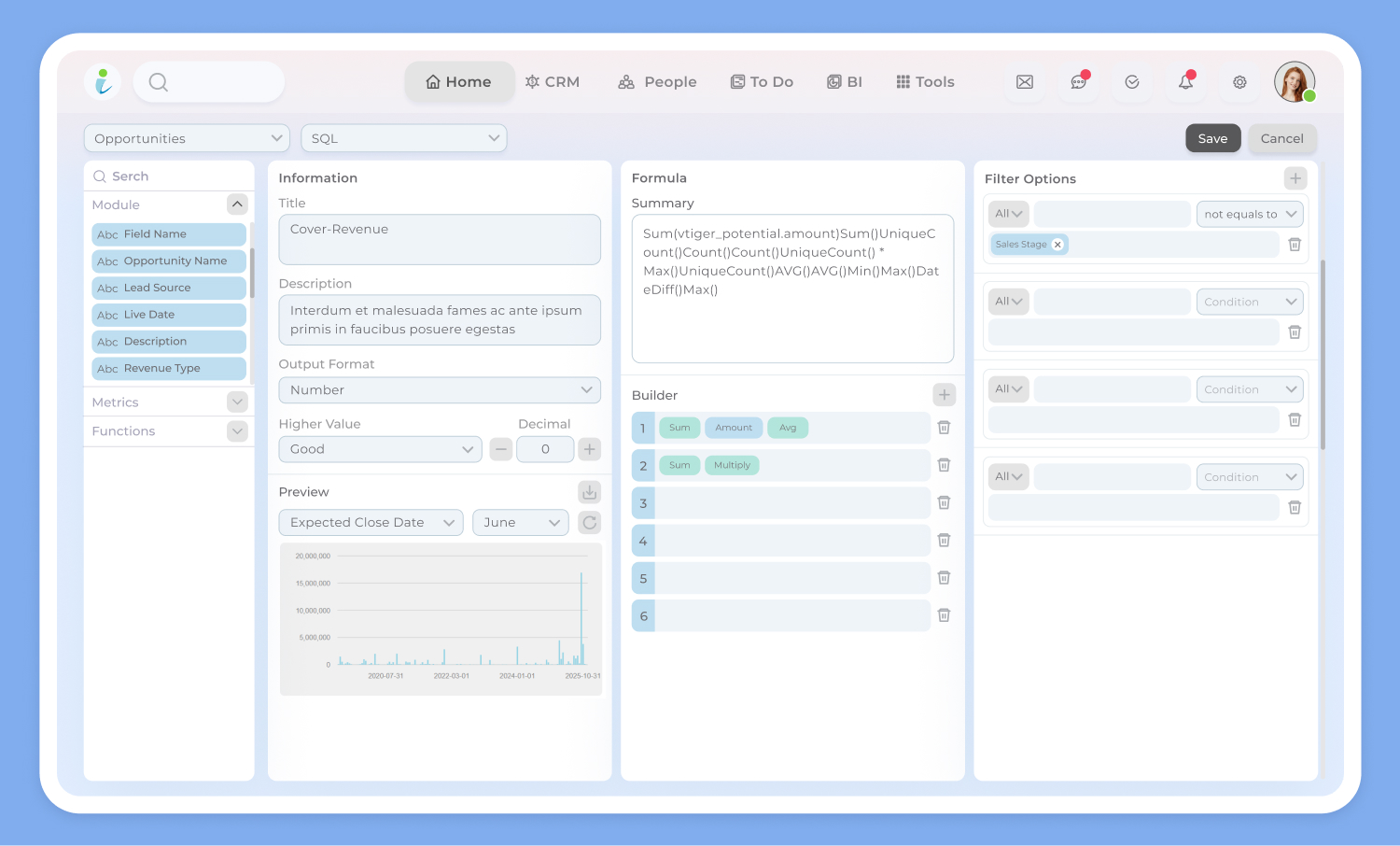 Drag and drop data points and formulas to easily build a metric
